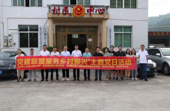 为积极响应乡村振兴战略,深入开展“三服务”活动,推动技术、服务等各类要素资源回归农村、流向基层、造福农民, 8月18日,温州市工业设计院党支部联合建筑规划设计院党支部、温州建苑施工图审查咨询中心党支部前往泰顺县彭溪镇官引村开展“党建联盟服务乡村振兴”志愿者服务活动。...
